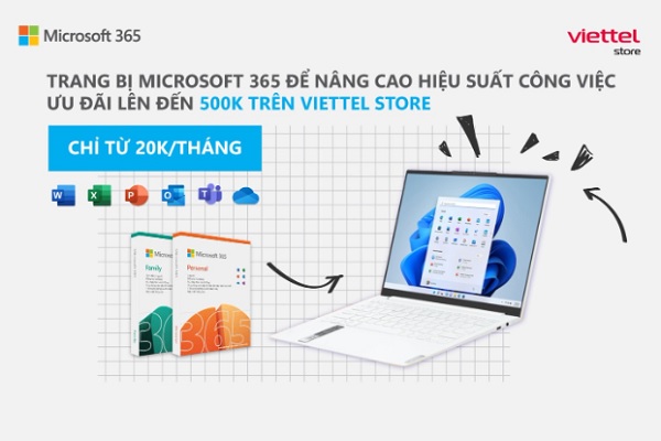 Ưu đãi khi mua Microsoft 365 lên đến 500k tại Viettel Store, chỉ từ 20k/tháng