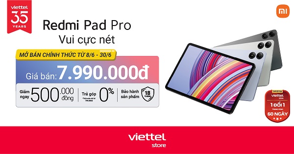 Redmi Pad Pro đã chính thức mở bán tại Viettel Store cùng chương trình hotsale giảm giá đến 500.000đ giá chỉ còn từ 7.490.000đ. Với nhiều thông số kỹ thuật nổi bật như trang bị con chip Snapdragon 7s Gen 2, sạc nhanh 33W, đi kèm những món phụ kiện chất lượng, sản phẩm hứa hẹn sẽ làm hài lòng khách hàng trong tầm giá 7 – 8 triệu.