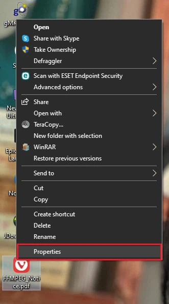 Bước 2: Nhấn chuột phải vào file PDF đó và chọn mục Properties.