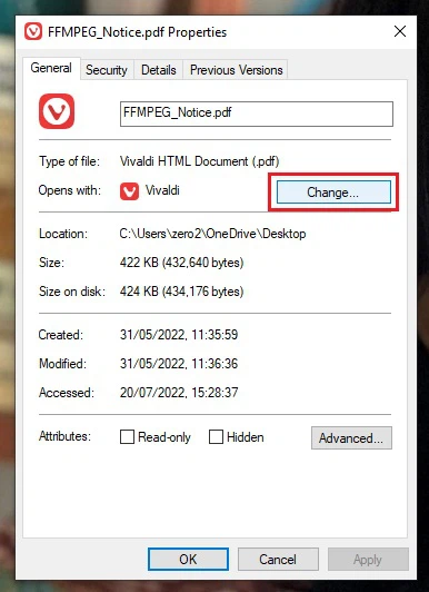 Bước 3: Cửa sổ mới hiện ra, bạn bấm vào mục Change.