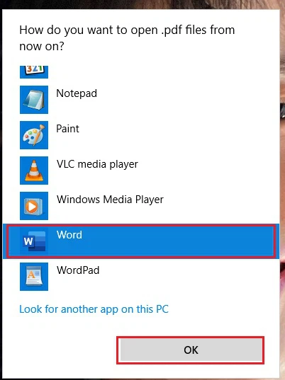 Sử dụng Word làm phần mềm mở file PDF mặc định