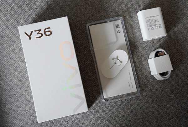 Thoạt nhìn, chúng ta dễ dàng nhận thấy phần hộp đựng của thiết bị khá nổi bật với hai tông màu chủ đạo là trắng và bạc. Mặt trước của hộp được tạo điểm nhấn bằng logo Vivo cùng dòng chữ Y36 ánh bạc hút mắt. Mặt sau là các thông số nổi bật của sản phẩm cũng như các thông tin về hãng sản xuất. Mở hộp Vivo Y36, bên trong bao gồm một chiếc điện thoại Vivo Y36 đi kèm ốp lưng, củ sạc, cáp USB-C, que chọc SIM và sách hướng dẫn sử dụng.