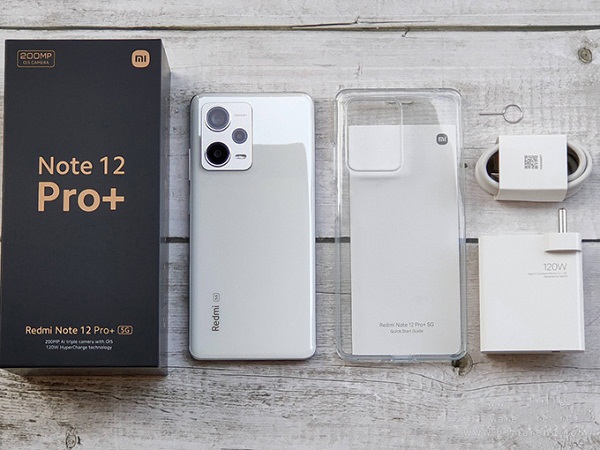 Theo các hình ảnh được chia sẻ tại thị trường Ấn Độ, mở hộp Xiaomi Redmi Note 12 Pro+ cho thấy điện thoại sẽ được đựng trong một chiếc hộp màu đen với các thông tin được in nổi trên vỏ hộp. Ngoài tên của điện thoại, còn có thông tin về camera 200MP ở góc trên bên trái hộp đựng. Đặc biệt, Redmi Note 12 Pro+ vẫn đi kèm với đầy đủ phụ kiện gồm que chọc sim, cáp sạc, giấy hướng dẫn, ốp lưng và cục sạc 120W.