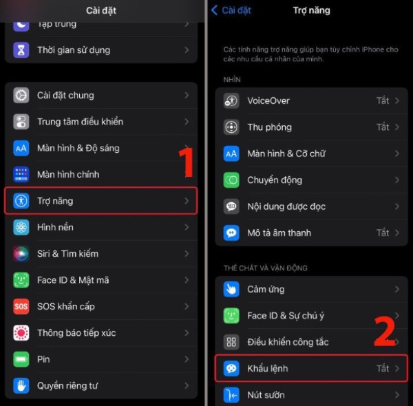 Trước tiên, bạn cần mở Cài đặt (Settings) trên điện thoại. Sau đó, tìm đến mục Trợ năng (Accessibility) và nhấn vào phần Khẩu lệnh (Voice Control).