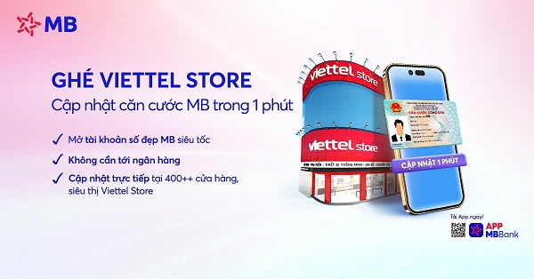 Bạn đã biết chưa? Từ nay, khách hàng MBbank có thể mở tài khoản thanh toán siêu tốc và cập nhật căn cước công dân chỉ trong 1 phút ngay tại hệ thống hơn 400 cửa hàng, siêu thị Viettel trên toàn quốc. Xem chi tiết ngay!!
