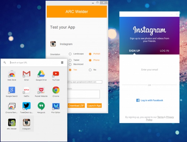 Sau khi cài đặt xong APK thì bạn có thể mở tiện ích ARC Welder từ danh sách ứng dụng Chrome, rồi chọn các ứng dụng mà bạn muốn render hay truy cập clipboard nhưng không phải toàn bộ ứng dụng sẽ hoạt động mà sẽ có một số ứng dụng bị lỗi.