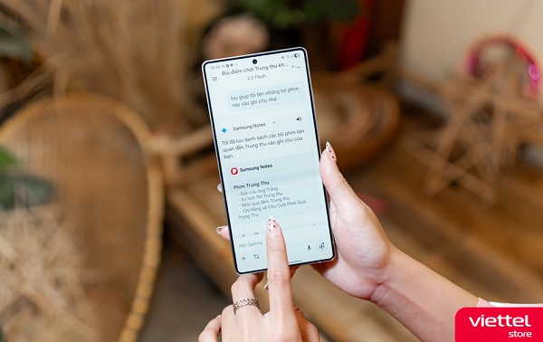 Thay vì chen chúc nơi phố xá đông đúc, cả gia đình có thể cùng nhau quây quần bên ánh trăng rằm và thưởng thức một bộ phim về chú Cuội, chị Hằng. Nếu chưa biết xem gì thì hãy để Gemini gợi bạn những bộ phim phù hợp chỉ qua một câu hỏi đơn giản. Ngoài việc tìm kiếm, nhờ vào tính năng Seamless Actions Across Apps, bạn còn có thể yêu cầu Galaxy S25 Ultra lưu ngay danh sách này vào ứng dụng Ghi chú mà không cần chuyển đổi giữa các màn hình, giảm thời gian thao tác.