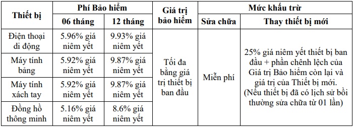 - Mức khấu trừ thay thiết bị mới: là số tiền khách hàng phải trả mỗi khi thay máy mới.