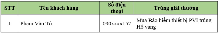 Sau khi hoàn tất các thủ tục mua hàng, khách hàng sẽ được nhận mã dự thưởng. Với mỗi 1 hợp đồng bảo hiểm thiết bị di động PVI khách hàng sẽ được cấp 01 mã số dự thưởng.