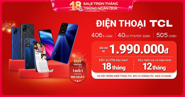 - Cơ hội trúng điện thoại TCL 505, 406S nhân dịp sinh nhật Viettel Store. Xem chi tiết TẠI ĐÂY.