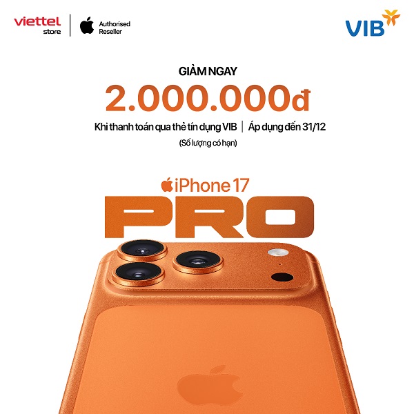 Chủ thẻ tín dụng VIB có ngay cơ hội nhận ưu đãi giảm 2.000.000đ khi mua iPhone 17, iPhone Air, iPhone 17 Pro và iPhone 17 Pro Max màu Xanh đậm.