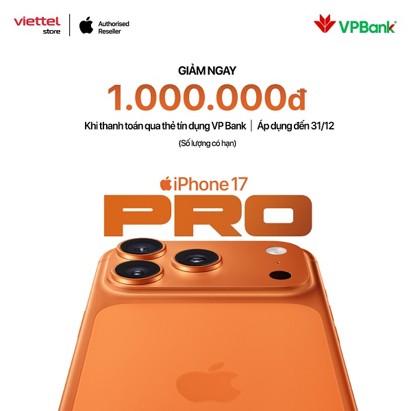 Chủ thẻ tín dụng VPBank nay có cơ hội tiết kiệm ngay 1.000.000 đồng khi mua iPhone 17, iPhone Air, iPhone 17 Pro và iPhone 17 Pro Max màu Xanh đậm.