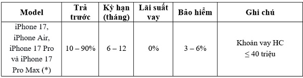 – Không áp dụng cho iPhone 17 series kỳ hạn 6 và 12 tháng.