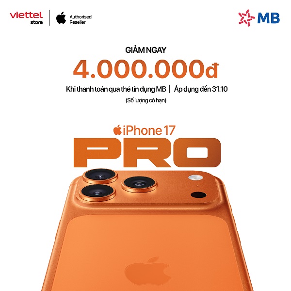Chủ thẻ tín dụng MB Bank nay có cơ hội nhận ưu đãi khủng khi mua iPhone: giảm ngay 4.000.000 đồng áp dụng với các sản phẩm: iPhone 17, iPhone Air, iPhone 17 Pro và iPhone 17 Pro Max màu Xanh đậm. Cụ thể: