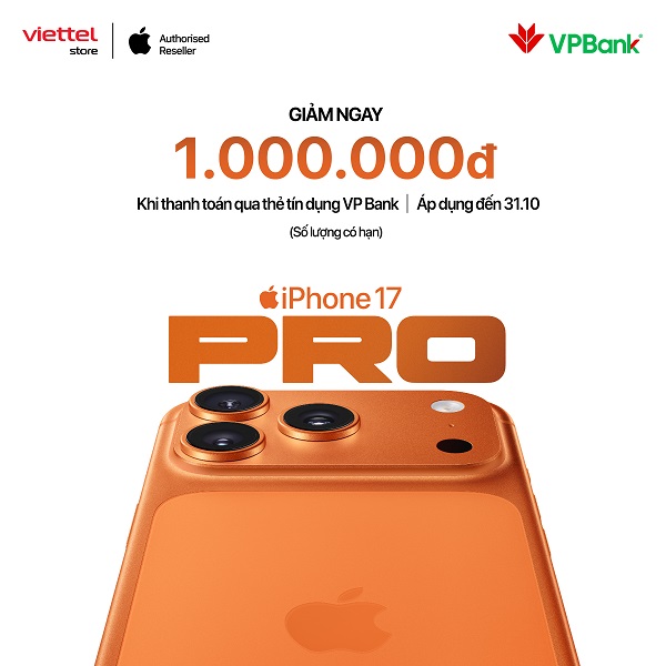 Chủ thẻ tín dụng VPBank nay có cơ hội tiết kiệm ngay 1.000.000 đồng khi mua iPhone 17, iPhone Air, iPhone 17 Pro và iPhone 17 Pro Max màu Xanh đậm.