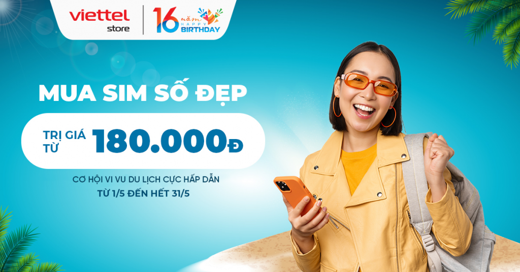 Từ ngày 01/05/2022 đến 31/05/2022, khách hàng mua SIM số đẹp có giá từ 180.000 đồng trở lên ( đã bao gồm VAT) sẽ được tham gia chương trình quay số may mắn trên website random.org để có cơ hội trúng 01 vé máy bay Vietjet hạng Eco, nội địa khứ hồi từ sân bay gần địa chỉ của khách hàng đến Đà Nẵng trị giá 6.000.000 đồng.