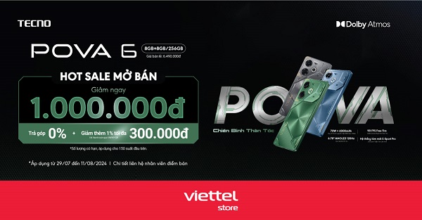 Từ ngày 29/07, Viettel Store chính thức lên kệ TECNO POVA 6 – “Chiến binh thần tốc” trên toàn quốc. Đặc biệt, trong thời gian mở bán, khi mua sản phẩm này bạn sẽ được giảm ngay ngay 1.000.000 đồng cùng các ưu đãi độc quyền.
