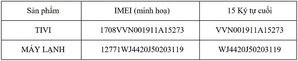 – Khách hàng tìm dãy số IMEI của sản phẩm ở mặt sau tivi, máy lạnh trên phiếu bảo hành