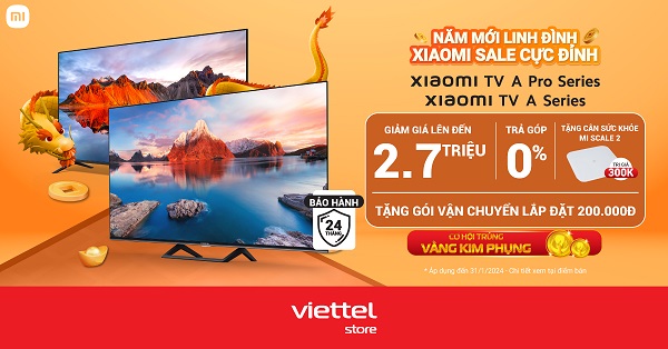 Từ nay đến hết ngày 31/01/2024, Viettel Store triển khai chương trình “Năm mới linh đình – Xiami sale cực đỉnh” áp dụng với các mẫu TV Xiaomi A Pro Series và A Series giảm giá lên đến 2,7 triệu đồng. Xem chi tiết ngay!