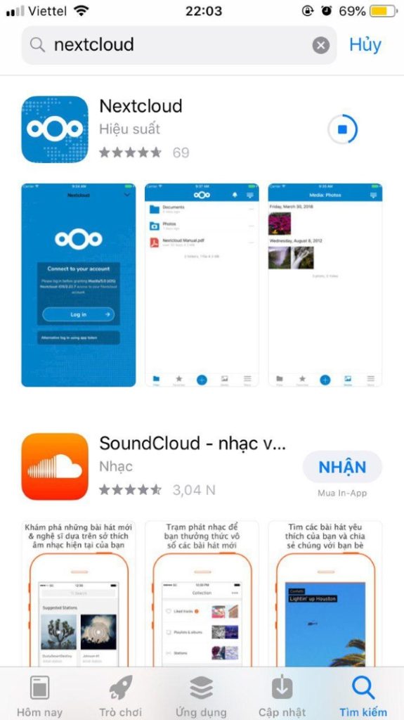 Vào thư viện ứng dụng Appstore tải xuống phần mềm Nextcloud.