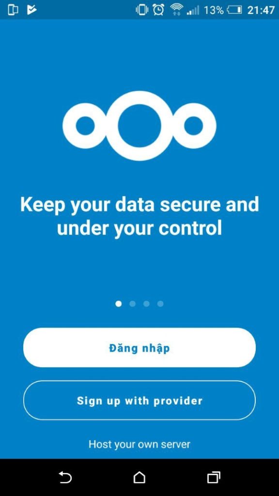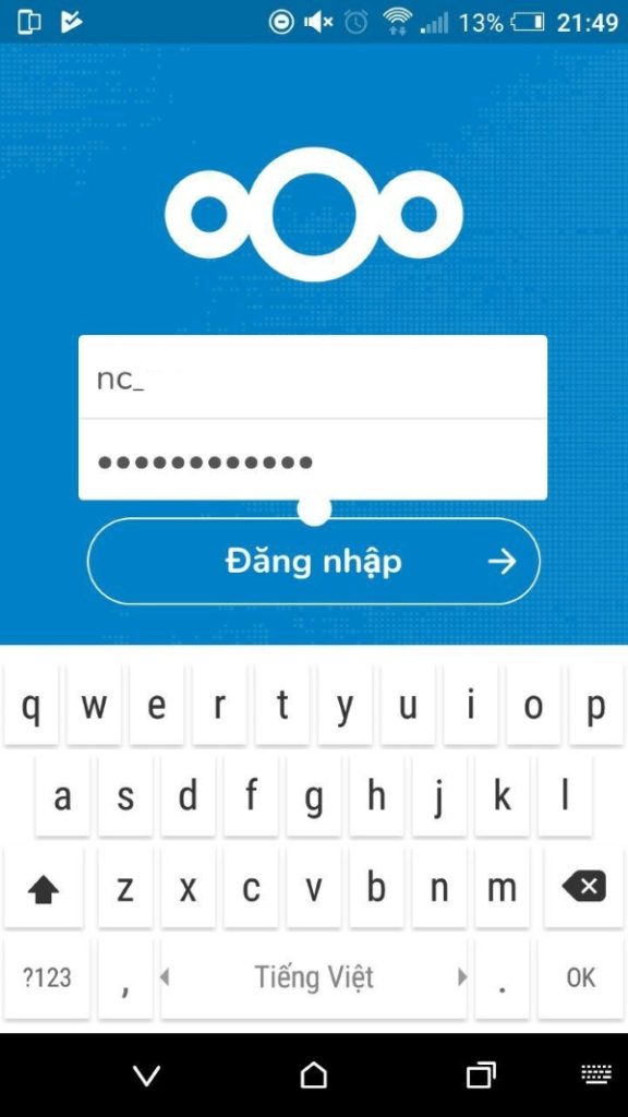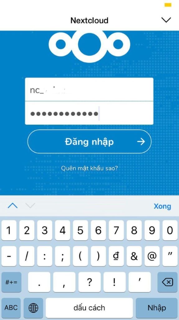 Sau khi tải hoàn tất, chọn đăng nhập vào ứng dụng Nextcloud. Chọn vào mục Đăng Nhập để thực hiện thao tác đăng nhập.