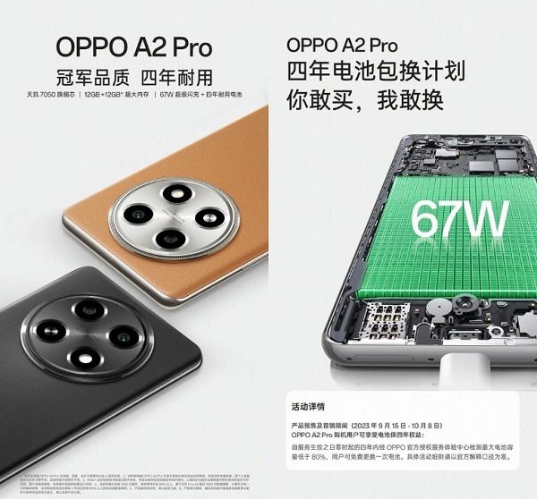 Theo OPPO, ngày ra mắt OPPO A2 Pro dự kiến sẽ được diễn ra vào ngày 15/9 tới tại thị trường Trung Quốc. Gần đây, hãng còn thông báo chương trình đổi pin cực hấp dẫn trong vòng 4 năm dành cho mẫu điện thoại này đó là nếu người dùng mua OPPO A2 Pro trước ngày 8/10 và dung lượng pin giảm xuống dưới 80% trong vòng 4 năm thì có thể đổi pin hoàn toàn miễn phí.