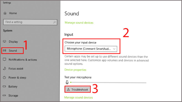 Tiếp theo, bạn kéo xuống phần Input > chọn micro muốn dùng bằng cách sử dụng menu tại Choose your input device > nhấn chọn vào Troubleshoot.