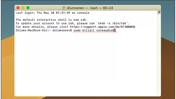 Để kiểm tra nguyên nhân Google Meet không nhận mic và cách khắc trong trường hợp này thì người dùng cần rời khỏi bất kỳ cuộc họp đang diễn ra trên ứng dụng Google Meet. Sau đó, bạn mở vào Terminal bằng cách mở Finder > chọn Applications > chọn Utilities > nhấn vào Terminal và nhập lệnh sau: sudo killall coreaudiod