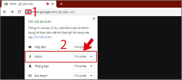 Với người dùng sử dụng trình duyệt Google Chrome trên máy Windows, bạn chỉ cần nhấn vào biểu tượng hình ổ khóa tại góc trái trên thanh địa chỉ > sau đó thay đổi mục micro thành Cho phép.