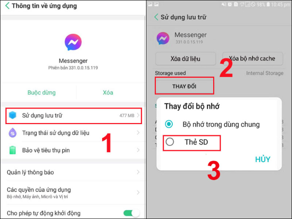 Cách 2: Chuyển cài đặt ứng dụng sang thẻ nhớ SG