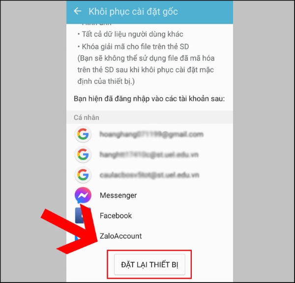 Bước 4: Nhấn chọn tiếp Đặt lại thiết bị.