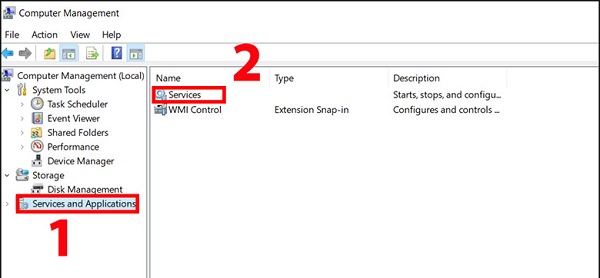 Bước 2: Nhấn chọn vào mục Services and Applications >> chọn Service