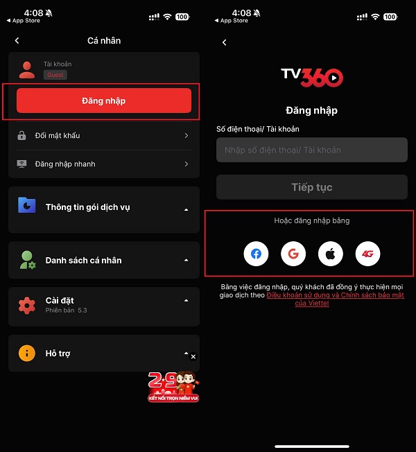 Bước 2: Sau khi cài đặt xong, hãy mở ứng dụng TV360 và đăng nhập bằng tài khoản Viettel của bạn. Đây là thao tác cần thiết để hệ thống ghi nhận và giúp bạn đủ điều kiện nhận 80.000 điểm Viettel ++ miễn phí.