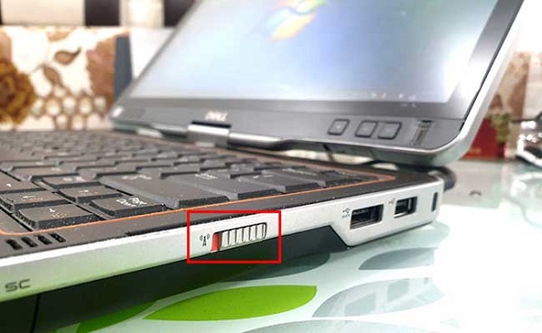 Đối với một số dòng laptop Dell cũ sẽ công tắc wifi trên thân máy hoặc có phím chức năng. Thông thường nút bật có màu xanh nghĩa là wifi đã được mở, còn nếu như màu cam hoặc đỏ nghĩa là đang tắt. Do phải thiết kế thêm nút bật cho nên phần thân máy sẽ có phần dày hơn. Đối với những dòng máy đời mới sẽ thường ưu tiên độ mỏng nhẹ cho nên công tắc này đã được loại bỏ ở đa số những dòng máy từ lâu.