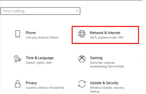 Bước 2: Giờ đây sẽ xuất hiện lên một bảng với nhiều mục chỉnh sửa. Người dùng cần truy cập vào mục Network & Internet để truy cập wifi.