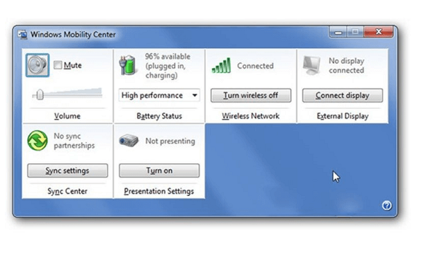 Bật Wifi bằng cửa sổ Windows Mobility Center