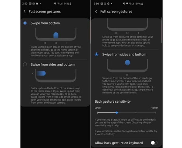 Thay đổi cử chỉ điều hướng của Google và Samsung
