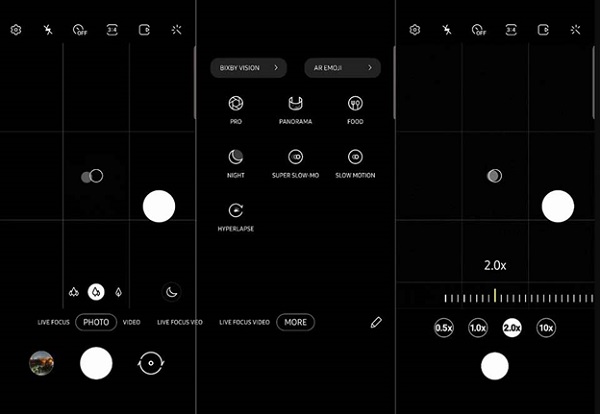 Hơn nữa, thay vì phóng to và thu nhỏ bằng ngón tay thì giờ đây bạn có thể chọn nhanh và chính xác hơn với các mức thu phóng hiển thị ở giao diện, bao gồm 0.5x, 1.0x, 2.0x và 10x. Sự thay đổi này giúp người dùng tiết kiệm được nhiều thơi gian “mò mẫm” hơn, thực sự rất hữu ích. Ngoài ra, One UI 2.0 không có thêm bất cứ tùy chọn mới nào trong phần cài đặt camera.
