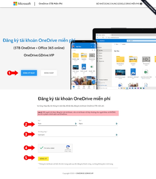 Mặc định khi đăng ký sử dụng OneDrive, người dùng sẽ được tặng 5GB dung lượng lưu trữ miễn phí để lưu trữ các tập tin, hình ảnh, video… lên trên đám mây của Microsoft.