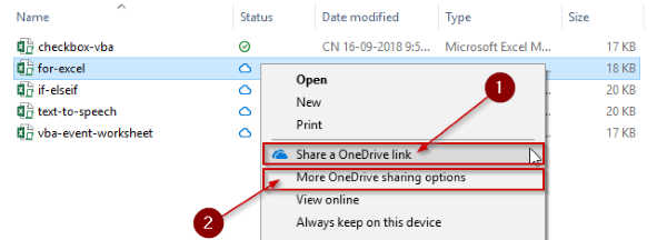 - Bước 2: Nhấn chuột phải vào tập tin > chọn “Share a OneDrive link”.