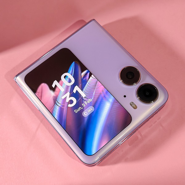 OPPO Find N2 Flip phiên bản màu Moonlit Purple vô cùng độc đáo với mặt lưng được làm bằng kính bóng loáng tựa như ánh trăng phản chiếu trên mặt nước. Phiên bản này mang lại sự dễ chịu cho mắt nhìn và chắc chắn nó sẽ trở thành một món phụ kiện hấp dẫn dành cho bạn trên mọi nẻo đường.