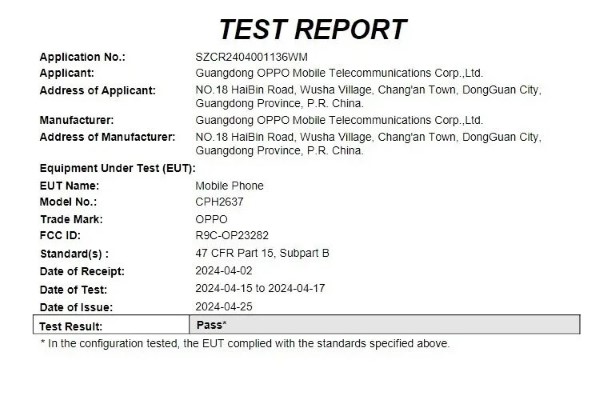 Trên chứng nhận FCC, chiếc điện thoại OPPO Reno12 F đã xuất hiện với model CPH2637, số kiểu máy VCB4JAUH/BLPA79 để xác nhận về thông số dung lượng pin và sạc nhanh. Điện thoại có thể sở hữu viên pin dung lượng lớn 5.000mAh, giúp bạn tự tin mang theo bên mình để sử dụng cả ngày dài mà không lo gặp các tình trạng gián đoạn hay sạc giữa chừng.