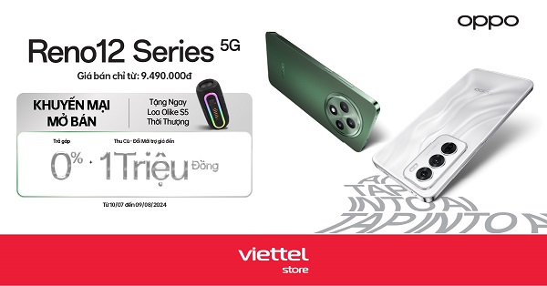 Hiện tại, OPPO Reno12 Series gồm OPPO Reno12 5G và Reno12 F 5G đang được bán tại Viettel Store với giá chỉ từ 9.490.000 đồng.