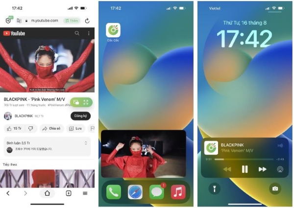 Video YouTube sau đó sẽ được ghim trong cửa sổ thu nhỏ tại góc màn hình và không mất đi khi đóng trình duyệt Cốc Cốc. Sau đó bạn chỉ cần tắt màn hình để nghe nhạc dưới nền.