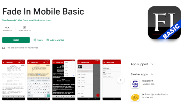 Đây là phiên bản thu gọn của ứng dụng Fade In, cho phép bạn sử dụng ngay lập tức mà không cần đăng nhập. Giao diện tối giản với biểu tượng dấu cộng ở góc phải giúp bạn nhanh chóng tạo tập lệnh mới. Khi viết, bạn sẽ thấy một giao diện đơn giản với các tùy chọn định dạng như tiêu đề cảnh, nhân vật, và chuyển cảnh nằm ở phía dưới màn hình. Ngoài ra, bạn còn có thể điều chỉnh kiểu chữ bằng các tùy chọn như in nghiêng, gạch chân hoặc gạch ngang.