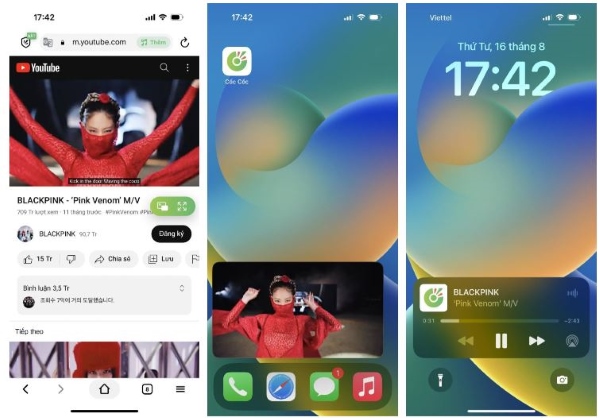 Video sau đó sẽ được ghim trên cửa sổ thu nhỏ tại góc màn hình và không mất đi khi người dùng đóng trình duyệt Cốc Cốc. Sau đó, bạn chỉ cần tắt màn hình và trải nghiệm nghe nhạc dưới nền.