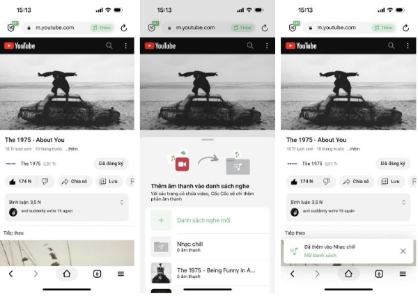 Trên thiết bị iOS, người dùng có thể nghe nhạc YouTube tắt màn hình trên trình duyệt Cốc Cốc Mobile bằng 2 cách. Đó là sử dụng tính năng Ghim video hoặc tạo danh sách phát trên trình duyệt Cốc Cốc cho iOS. Bạn có thể tham khảo chi tiết thực hiện các cách này như sau: