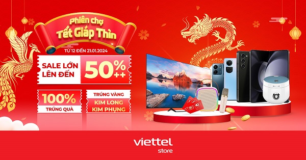 Tết này bạn đang có ý định “tậu” dế mới, máy tính bảng, đồng hồ thông minh, phụ kiện, gia dụng hoặc SIM số đẹp thì đừng bỏ lỡ phiên Tết Giáp Thìn của Viettel Store sale lớn đến đến 50%++, 100% nhận quà cùng cơ hội trúng vàng Kim Long Kim Phụng nhé!