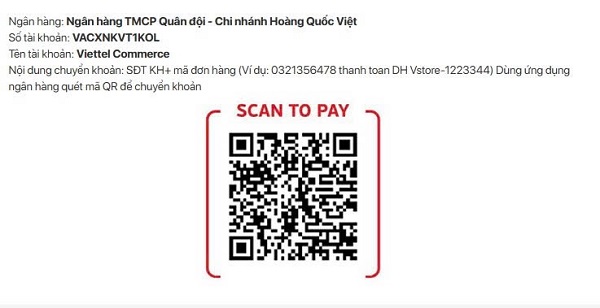 - Quý khách có thể đến mua hàng và thanh toán trực tiếp tại các Siêu thị thuộc hệ thống Viettel Store.