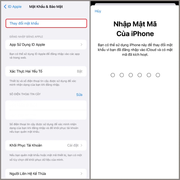 Trường hợp người dùng ghi nhớ các thông tin mật khẩu xác minh cũng có thể lấy lại thông tin mật khẩu của tài khoản ID Apple. Thao tác thực hiện như sau: